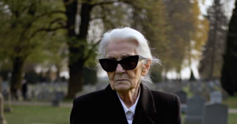 When I turned to leave, I spotted a thin silhouette a few rows away, next to a fresh grave. An old blind woman, dressed in a simple black outfit, leaning on a white cane.