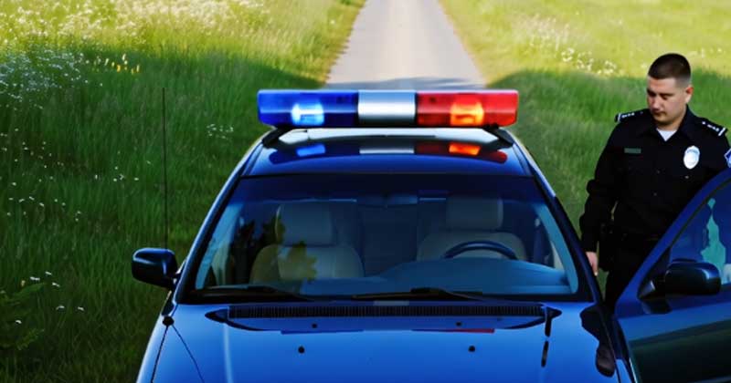 His patrol car, a black and blue sedan, was cruising safely on the asphalt, reflecting the streetlights in the windshield. The radio was buzzing softly, completing the silence. Everything seemed in order.