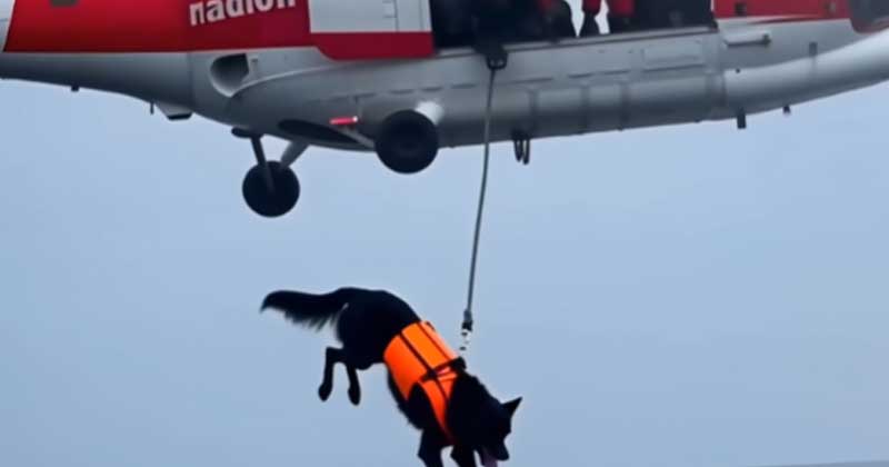 The helicopter crew had already lowered a rope with a life buoy, but the dog reached him first. I saw it grab the sleeve of his jacket with incredible delicacy and begin to pull him slowly towards the buoy. It was an animal, but it seemed to know exactly what it was doing.