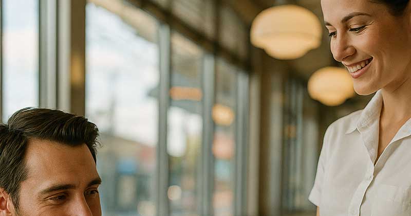 After they finished their meal, James asked for the bill. When the woman handed him the receipt, he noticed the name written on her badge: Elena.