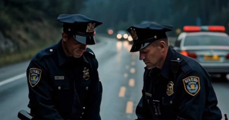 I felt goosebumps on my skin. In a coffin, in the middle of the road, lit candles… it was something that defied logic. My colleagues took a few steps back, and Rex, the service dog, began to growl softly, his fur bristling.
