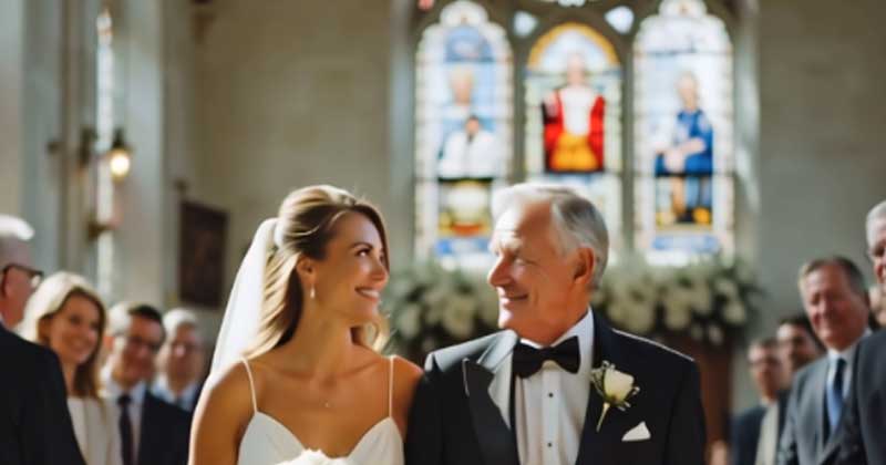 When the church doors opened, everyone stood up. The music began to play, and their footsteps echoed on the stone floor. Emily felt every gaze on her, but for the first time in her life, she didn’t feel alone. Michael walked beside her with dignity, as if he were truly her father.