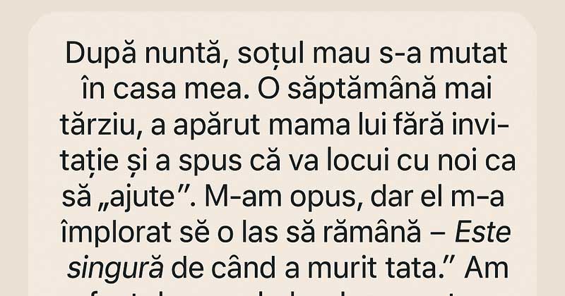 In the first week, I tried to keep the peace. I closed my eyes to the jabs. I held back when she reorganized my cupboards, cooked without asking, moved my books, intervened in our conversations.