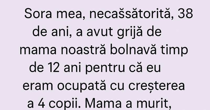 My unmarried sister, 38, took care of our sick mother for 12 years while I was busy raising my 4 children. Mom passed away, and I want my sister to move out so we can sell the house and split the money 50/50. But she told me, “You don’t deserve any money! You weren’t a devoted daughter!”