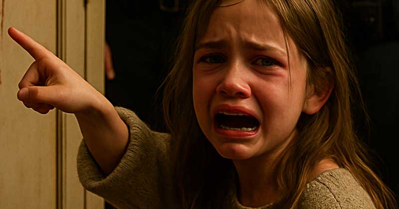 With trembling hands, the little girl pushed the bedroom door and stepped inside. The smell of mothballs and old wood hit her. The dim light from the hallway crept across the floor, reaching the edge of the closet.