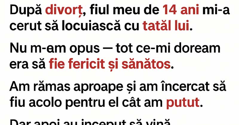 I agreed when Mason, my 14-year-old son, begged me to let him move in with his father after the divorce.